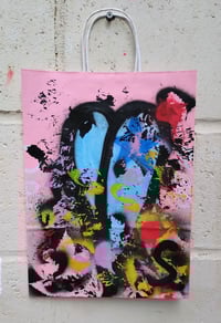 Bagged No.11, acrylic, gloss varnish, on found, unwanted, recycled (some might say upcycled) fashion bag. 26x37cm (July 2024)