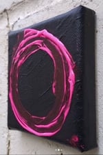 The ongoing matter of Tens, small paintings, always on a 10cm canvas, I did paint 1000 in 1000 days, one concluded every day, I like the format, I like having them around waiting to be finished, I like having a line of them waiting to be worked on here in the studio while I'm working on bigger pieces and while they will not be concluded on a daily basis from now on (beyond the first 1000), they will still be happening regularly and it will still be about tens, 10cm, Ten quid, Ten. This is the 1132nd in a still ongoing series of 10cm square canvas paintings...